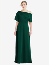 【NEW】【STYLE: 3076】ワンショルダー スリーブ ブルーソン トランペット ガウン【COLOR: Hunter Green】【SIZE: 00-30W】