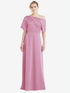 【NEW】【STYLE: 3076】ワンショルダー スリーブ ブルーソン トランペット ガウン【COLOR: Powder Pink】【SIZE: 00-30W】