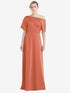 【NEW】【STYLE: 3076】ワンショルダー スリーブ ブルーソン トランペット ガウン【COLOR: Terracotta Copper】【SIZE: 00-30W】