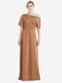 【NEW】【STYLE: 3076】ワンショルダー スリーブ ブルーソン トランペット ガウン【COLOR: Toffee】【SIZE: 00-30W】