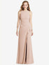 【NEW】【STYLE: 3081】ホルター マキシ ドレス カスケード フリル スリット【COLOR: Cameo】【SIZE: 00-30W】