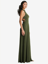 【NEW】【STYLE: 3082】スタンド 襟 ホルター マキシ ドレス criss Cross オープンバック【COLOR: Olive Green】【SIZE: 00-30W】