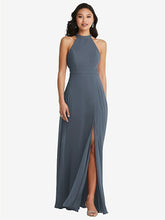 このluxシフォンの魅力的な交差点を開いて、ホルターマキシドレスが頭を回します。控えめなスタンドカラーと修正されたサークルスカートは、この劇的なデザインを補完します。