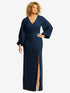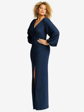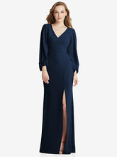 【NEW】【STYLE: 3083】長い パフ 袖 Vネック トランペット ガウン【COLOR: Midnight Navy】【SIZE: 00-30W】