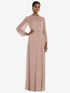 弓ベルトをトリミングした床の長さのサークルスカートを備えたこのラックスシフォンマキシドレスの流れる美しさでダンスフロアを照らします。ささやくと、ブルーソンのオーバーレイは、その形式的なシャーリングされた宝石のネックラインと司教の袖に謎のヒントを与えます。柔らかく洗練されたこのドレスは、花嫁介添人に最適です。
