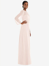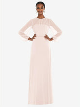 弓ベルトをトリミングした床の長さのサークルスカートを備えたこのラックスシフォンマキシドレスの流れる美しさでダンスフロアを照らします。ささやくと、ブルーソンのオーバーレイは、その形式的なシャーリングされた宝石のネックラインと司教の袖に謎のヒントを与えます。柔らかく洗練されたこのドレスは、花嫁介添人に最適です。