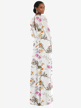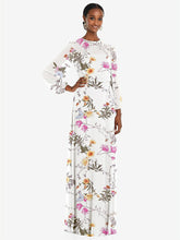 【NEW】【STYLE: 3098】ストラップレス シフォン マキシ ドレス パフ付き スリーブ ブルーソン オーバーレイ 【COLOR: Butterfly Botanica Ivory】【SIZE: 00-30W】