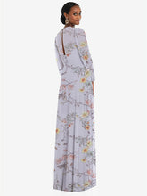 【NEW】【STYLE: 3098】ストラップレス シフォン マキシ ドレス パフ付き スリーブ ブルーソン オーバーレイ 【COLOR: Butterfly Botanica Silver Dove】【SIZE: 00-30W】