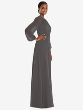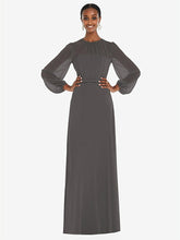 【NEW】【STYLE: 3098】ストラップレス シフォン マキシ ドレス パフ付き スリーブ ブルーソン オーバーレイ 【COLOR: Caviar Gray】【SIZE: 00-30W】