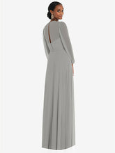 弓ベルトをトリミングした床の長さのサークルスカートを備えたこのラックスシフォンマキシドレスの流れる美しさでダンスフロアを照らします。ささやくと、ブルーソンのオーバーレイは、その形式的なシャーリングされた宝石のネックラインと司教の袖に謎のヒントを与えます。柔らかく洗練されたこのドレスは、花嫁介添人に最適です。