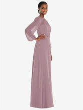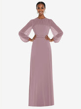 弓ベルトをトリミングした床の長さのサークルスカートを備えたこのラックスシフォンマキシドレスの流れる美しさでダンスフロアを照らします。ささやくと、ブルーソンのオーバーレイは、その形式的なシャーリングされた宝石のネックラインと司教の袖に謎のヒントを与えます。柔らかく洗練されたこのドレスは、花嫁介添人に最適です。