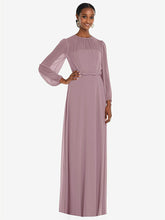 【NEW】【STYLE: 3098】ストラップレス シフォン マキシ ドレス パフ付き スリーブ ブルーソン オーバーレイ 【COLOR: Dusty Rose】【SIZE: 00-30W】