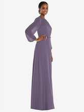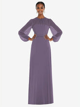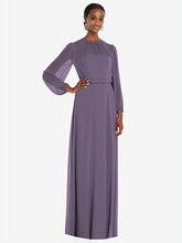 弓ベルトをトリミングした床の長さのサークルスカートを備えたこのラックスシフォンマキシドレスの流れる美しさでダンスフロアを照らします。ささやくと、ブルーソンのオーバーレイは、その形式的なシャーリングされた宝石のネックラインと司教の袖に謎のヒントを与えます。柔らかく洗練されたこのドレスは、花嫁介添人に最適です。