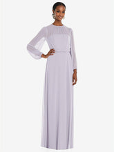 弓ベルトをトリミングした床の長さのサークルスカートを備えたこのラックスシフォンマキシドレスの流れる美しさでダンスフロアを照らします。ささやくと、ブルーソンのオーバーレイは、その形式的なシャーリングされた宝石のネックラインと司教の袖に謎のヒントを与えます。柔らかく洗練されたこのドレスは、花嫁介添人に最適です。