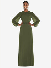 【NEW】【STYLE: 3098】ストラップレス シフォン マキシ ドレス パフ付き スリーブ ブルーソン オーバーレイ 【COLOR: Olive Green】【SIZE: 00-30W】