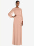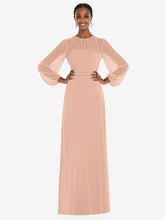 【NEW】【STYLE: 3098】ストラップレス シフォン マキシ ドレス パフ付き スリーブ ブルーソン オーバーレイ 【COLOR: Pale Peach】【SIZE: 00-30W】