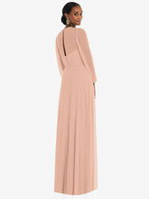 弓ベルトをトリミングした床の長さのサークルスカートを備えたこのラックスシフォンマキシドレスの流れる美しさでダンスフロアを照らします。ささやくと、ブルーソンのオーバーレイは、その形式的なシャーリングされた宝石のネックラインと司教の袖に謎のヒントを与えます。柔らかく洗練されたこのドレスは、花嫁介添人に最適です。
