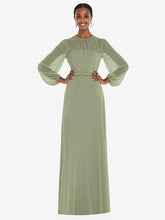 【NEW】【STYLE: 3098】ストラップレス シフォン マキシ ドレス パフ付き スリーブ ブルーソン オーバーレイ 【COLOR: Sage】【SIZE: 00-30W】