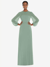 【NEW】【STYLE: 3098】ストラップレス シフォン マキシ ドレス パフ付き スリーブ ブルーソン オーバーレイ 【COLOR: Seagrass】【SIZE: 00-30W】