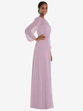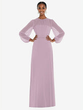 弓ベルトをトリミングした床の長さのサークルスカートを備えたこのラックスシフォンマキシドレスの流れる美しさでダンスフロアを照らします。ささやくと、ブルーソンのオーバーレイは、その形式的なシャーリングされた宝石のネックラインと司教の袖に謎のヒントを与えます。柔らかく洗練されたこのドレスは、花嫁介添人に最適です。