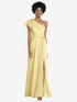【NEW】【STYLE: 3099】ドレープ ワンショルダー フラッター 袖 マキシ ドレス 前面 スリット【COLOR: Pale Yellow】【SIZE: 00-30W】