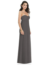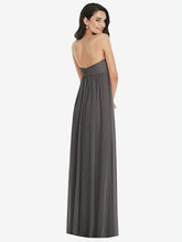 豊かで堂々とした美学を作り、無邪気さを少しだけ堂々としています。このストラップレスでリージェンシーにインスパイアされたマキシドレス機能は、夢のような外観のために柔らかく薄いラックスシフォンから作られたシャーリングボディスと流れのようなシアースカートをねじります。