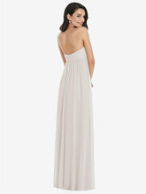 豊かで堂々とした美学を作り、無邪気さを少しだけ堂々としています。このストラップレスでリージェンシーにインスパイアされたマキシドレス機能は、夢のような外観のために柔らかく薄いラックスシフォンから作られたシャーリングボディスと流れのようなシアースカートをねじります。