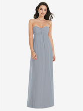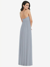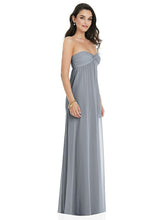 豊かで堂々とした美学を作り、無邪気さを少しだけ堂々としています。このストラップレスでリージェンシーにインスパイアされたマキシドレス機能は、夢のような外観のために柔らかく薄いラックスシフォンから作られたシャーリングボディスと流れのようなシアースカートをねじります。