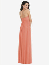 豊かで堂々とした美学を作り、無邪気さを少しだけ堂々としています。このストラップレスでリージェンシーにインスパイアされたマキシドレス機能は、夢のような外観のために柔らかく薄いラックスシフォンから作られたシャーリングボディスと流れのようなシアースカートをねじります。