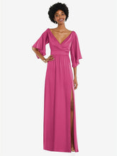 【NEW】【STYLE: 3102】非対称 ベル スリーブ ラップ マキシ ドレス 前面 スリット【COLOR: Tea Rose】【SIZE: 00-30W】