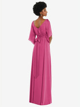 非対称のベルの袖に美しいドレープと余剰のネックラインは、このささやきのサテン、フルレングスのガウンに柔らかくてエーテルの外観を与えます。柔軟なウエストの広いサッシと、ピークアブースリットのある柔らかいシャースカートが優雅に外観を完成させます。スカートのポケット。次の正式なイベントに最適です!