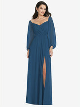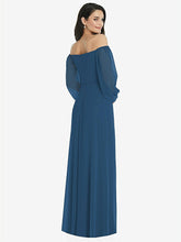 【NEW】【STYLE: 3104】オフショルダー パフ スリーブ マキシ ドレス 前面 スリット【COLOR: Dusk Blue】【SIZE: 00-30W】