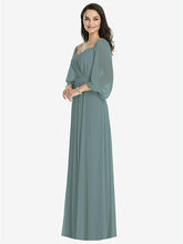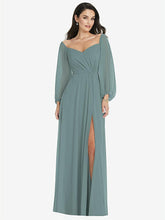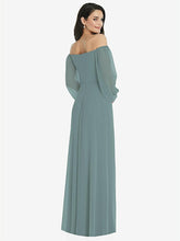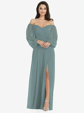 【NEW】【STYLE: 3104】オフショルダー パフ スリーブ マキシ ドレス 前面 スリット【COLOR: Icelandic】【SIZE: 00-30W】