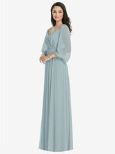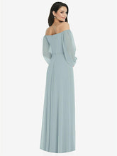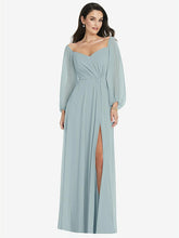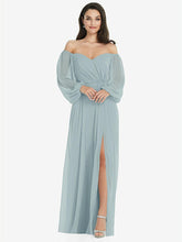 【NEW】【STYLE: 3104】オフショルダー パフ スリーブ マキシ ドレス 前面 スリット【COLOR: Morning Sky】【SIZE: 00-30W】