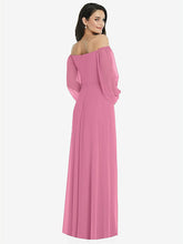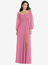 【NEW】【STYLE: 3104】オフショルダー パフ スリーブ マキシ ドレス 前面 スリット【COLOR: Orchid Pink】【SIZE: 00-30W】