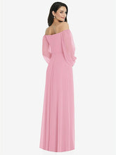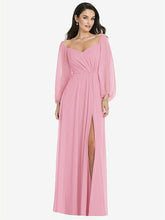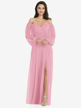 【NEW】【STYLE: 3104】オフショルダー パフ スリーブ マキシ ドレス 前面 スリット【COLOR: Peony Pink】【SIZE: 00-30W】