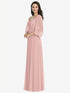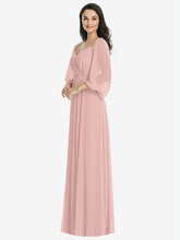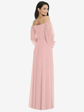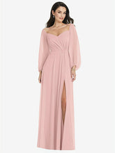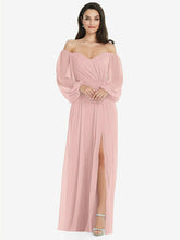 【NEW】【STYLE: 3104】オフショルダー パフ スリーブ マキシ ドレス 前面 スリット【COLOR: Rose - PANTONE Rose Quartz】【SIZE: 00-30W】