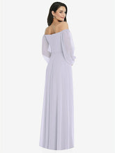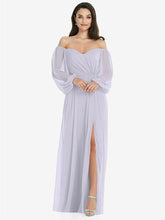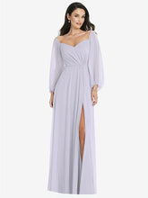 【NEW】【STYLE: 3104】オフショルダー パフ スリーブ マキシ ドレス 前面 スリット【COLOR: Silver Dove】【SIZE: 00-30W】
