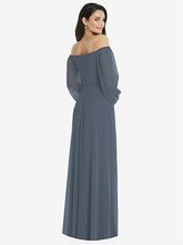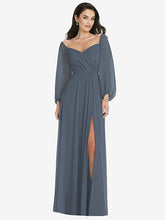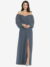 【NEW】【STYLE: 3104】オフショルダー パフ スリーブ マキシ ドレス 前面 スリット【COLOR: Silverstone】【SIZE: 00-30W】