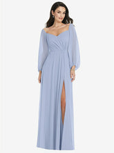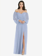 【NEW】【STYLE: 3104】オフショルダー パフ スリーブ マキシ ドレス 前面 スリット【COLOR: Sky Blue】【SIZE: 00-30W】