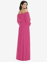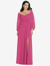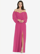 【NEW】【STYLE: 3104】オフショルダー パフ スリーブ マキシ ドレス 前面 スリット【COLOR: Tea Rose】【SIZE: 00-30W】