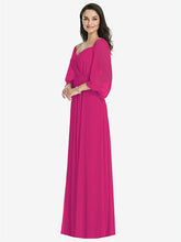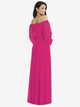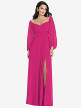 【NEW】【STYLE: 3104】オフショルダー パフ スリーブ マキシ ドレス 前面 スリット【COLOR: Think Pink】【SIZE: 00-30W】