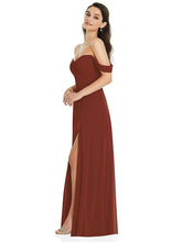 【NEW】【STYLE: 3105】オフショルダー ドレープ 袖 マキシ ドレス 前面 スリット【COLOR: Auburn Moon】【SIZE: 00-30W】