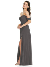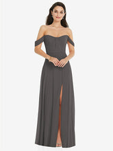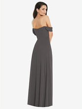 【NEW】【STYLE: 3105】オフショルダー ドレープ 袖 マキシ ドレス 前面 スリット【COLOR: Caviar Gray】【SIZE: 00-30W】