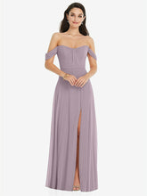 【NEW】【STYLE: 3105】オフショルダー ドレープ 袖 マキシ ドレス 前面 スリット【COLOR: Lilac Dusk】【SIZE: 00-30W】