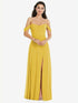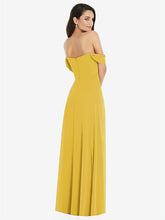 【NEW】【STYLE: 3105】オフショルダー ドレープ 袖 マキシ ドレス 前面 スリット【COLOR: Marigold】【SIZE: 00-30W】