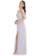【NEW】【STYLE: 3105】オフショルダー ドレープ 袖 マキシ ドレス 前面 スリット【COLOR: Moondance】【SIZE: 00-30W】