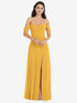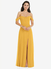 【NEW】【STYLE: 3105】オフショルダー ドレープ 袖 マキシ ドレス 前面 スリット【COLOR: NYC Yellow】【SIZE: 00-30W】