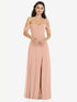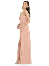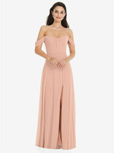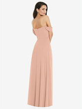 【NEW】【STYLE: 3105】オフショルダー ドレープ 袖 マキシ ドレス 前面 スリット【COLOR: Pale Peach】【SIZE: 00-30W】
