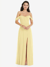 【NEW】【STYLE: 3105】オフショルダー ドレープ 袖 マキシ ドレス 前面 スリット【COLOR: Pale Yellow】【SIZE: 00-30W】